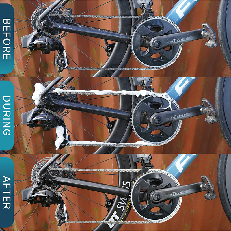El Desengrasante de Cadena Thunder Foam es rápido, fácil y divertido de usar. Simplemente aplícalo directamente sobre la cadena, el cassette y las roldanas. Deja actuar un minuto y luego extiende la espuma con un paño o cepillo. Si tienes prisa, un enjuague rápido con agua eliminará cualquier resto de espuma.