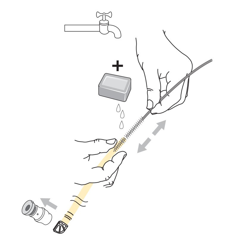 El cepillo flexible para tubos está diseñado para una limpieza fácil, rápida y completa del tubo para beber de su sistema de hidratación. Limpia el tubo para beber de cualquier residuo, por ejemplo, de bebidas muy azucaradas o isotónicas.