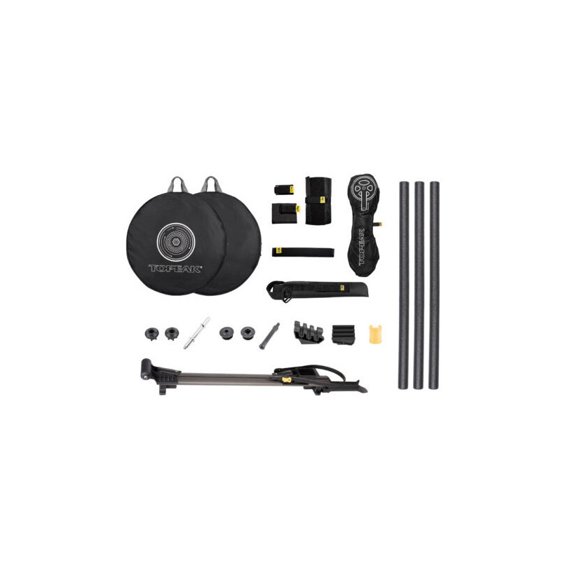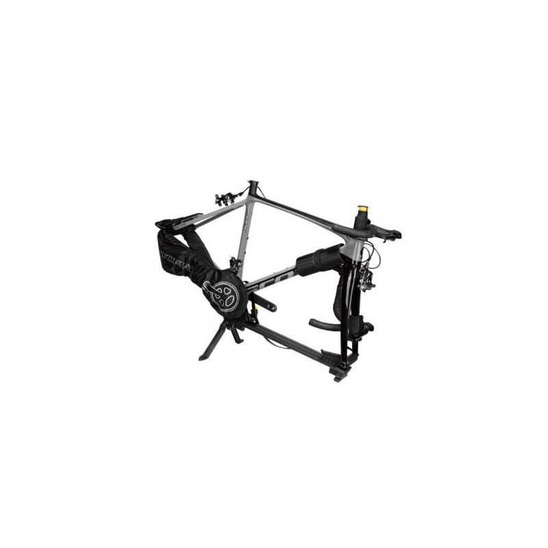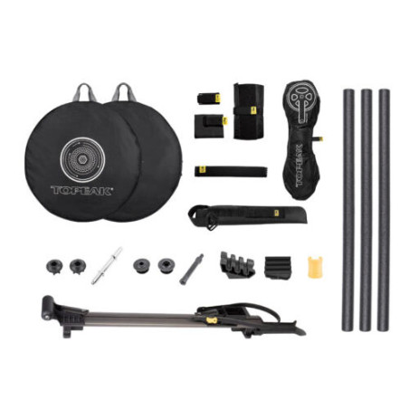 Un sistema de transporte para bicicletas fácil de montar y desmontar, con una carcasa de policarbonato Makrolon® ligera y flexible, de alta resistencia a los impactos y reforzada con un sistema de montaje de aluminio. Su diseño vertical, con cuatro ruedas multidireccionales de 60 mm de diámetro, ofrece una facilidad de transporte similar a la de una maleta e incluye asas y un candado TSA integrado para un transporte seguro. Dos bolsas para ruedas, fundas protectoras y una cubierta para la transmisión protegen contra arañazos y manchas de grasa, mientras que los bolsillos interiores ayudan a mantener tu equipo organizado hasta tu destino final. Al llegar, el sistema de montaje se despliega para formar un mini soporte que mantiene el cuadro estable durante el montaje y el ajuste.