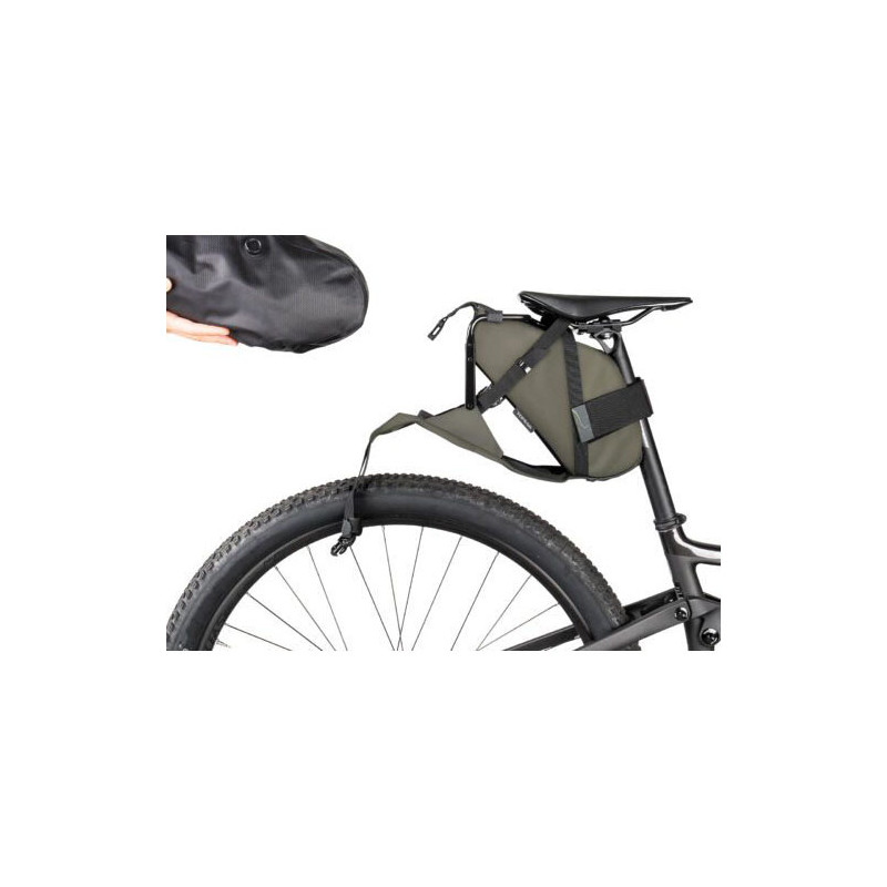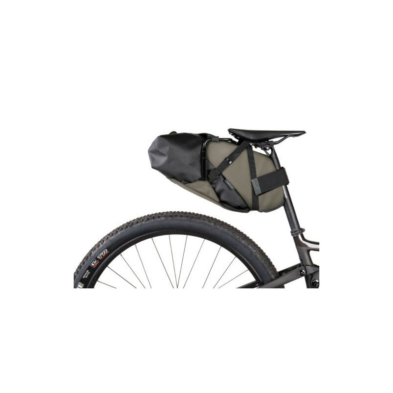 Bolsa para el sillín de gran capacidad diseñada específicamente para bikepackers que buscan una forma aerodinámica de transportar equipo sin necesidad de un portaequipajes trasero. El tejido reforzado antideslizante/arañazos protege el sillín, mientras que el sistema de montaje avanzado permite una instalación cómoda y segura en la tija y los raíles del sillín. La bolsa de transporte impermeable de fácil acceso y la válvula para liberar aire incorporada mantienen la bolsa compacta y completamente seca.