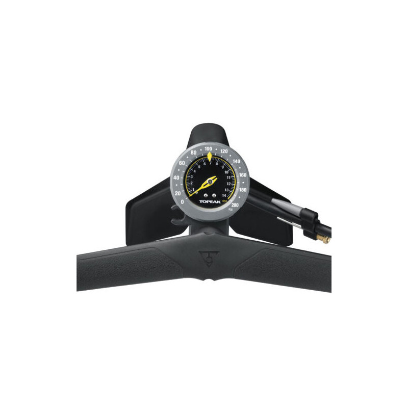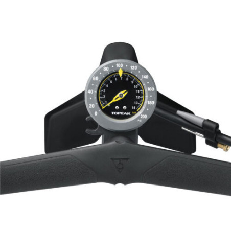 El SmartHead® con botón de liberación de aire permite ajustar con precisión la presión de aire. Base estable y ancha de tres patas con cuerpo de acero más delgado para facilitar el inflado hasta 200 psi / 14 bar. Manguera extra larga de 120 cm (47 pulgadas) para facilitar el acceso a las ruedas delantera y trasera, o mientras la bicicleta está en el soporte de trabajo.