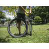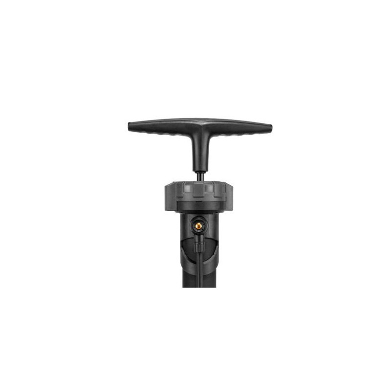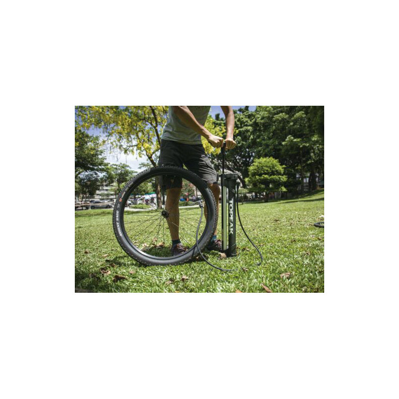 Mitad compresor, mitad bomba es perfecta para neumáticos tubeless. Dispone de un depósito de Aluminio que acumula una carga de aire de hasta 160 psi/11 bar para que el inflado del nuemático tubeless sea rápido y preciso. Al cambiar del Modo Carga al Modo Inflar el aire del depósito sale como en una bomba estándar. El medidor de presión se encuentra en la parte superior para facilitar la lectura de éste, también dispone de un botón por si hubiera exceso de presión, una manguera extra larga y una base muy estable para facilitar el inflado.