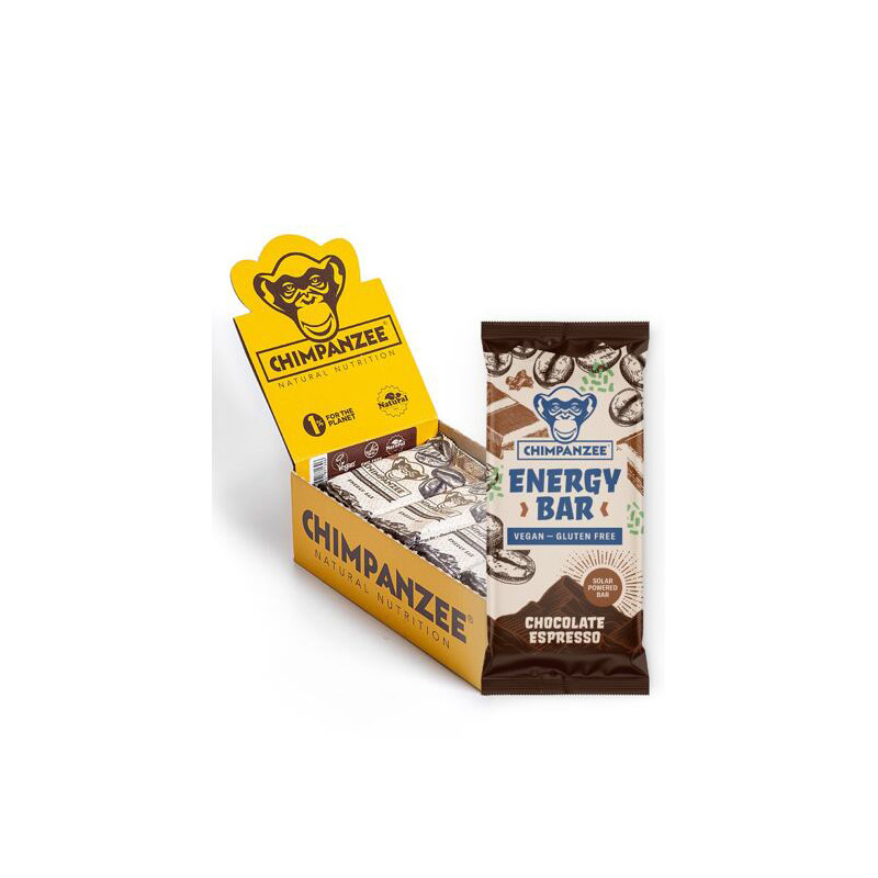 La Energy Bar de chocolate y espresso Chimpanzee no contiene cafeína ni conservantes