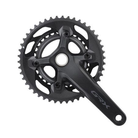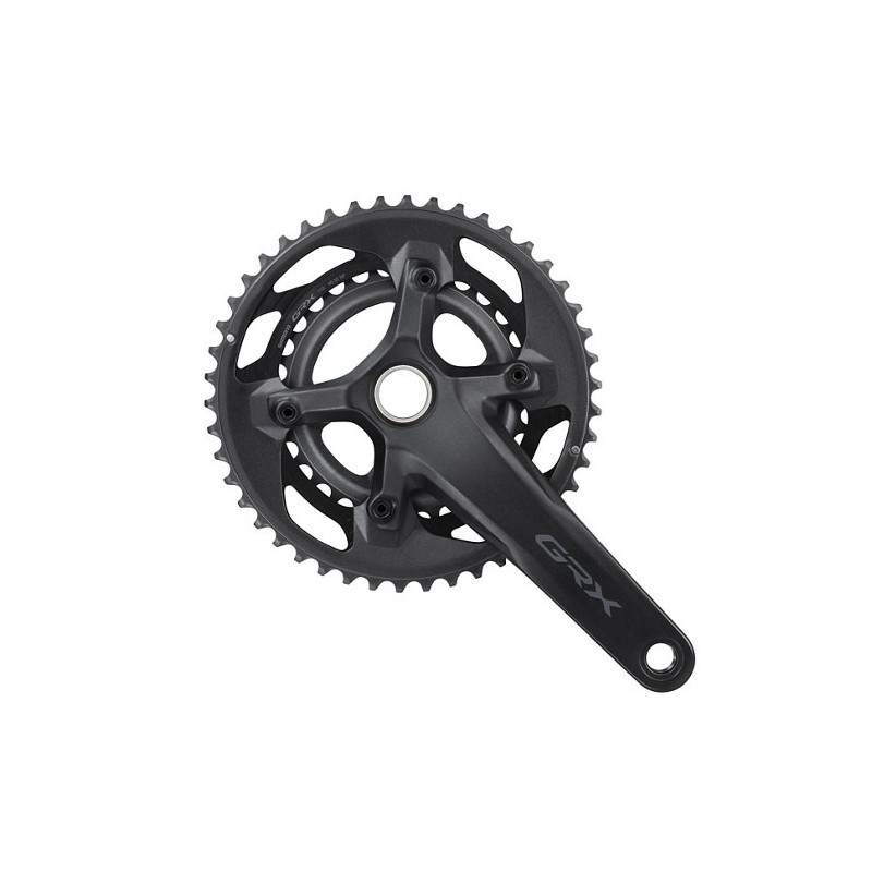 Juegos de biela GRX: Los juegos de biela GRX están diseñados para diferentes terrenos y estilos; todos traen una línea de cadena con +2,5mm para neumáticos más anchos y mayor distancia al cuadro. Las bielas monoplato ofrecen la sencillez del cambio único en el cassette trasero (las opciones incluyen los cassettes RX800/600 40T y RX800 42T) y cuentan con dientes de perfil Shimano Dynamic Chain Engagement en el plato delantero que proporcionan mayor retención de cadena en terrenos accidentados. Asimismo, la biela GRX de doble plato RX810 lleva un salto de 17 dientes, en 48-31T, que es la relación más amplia desarrollada por la marca hasta el momento. Junto a las opciones adicionales RX600-11/10 46-30T, las bielas de doble plato brindan relaciones de marchas suficientemente amplias para atacar las pendientes más pronunciadas.