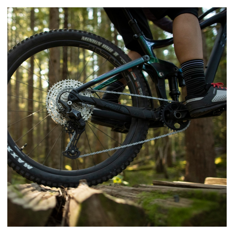 La cadena M6100 mejora el cambio y la retención de la cadena gracias a una parte extendida de la placa interior. La nueva guía de cadena incorpora QUICK-LINK y se ha optimizado para casetes HYPERGLIDE+ y platos DYNAMIC CHAIN ??ENGAGEMENT+.