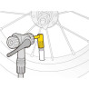 La válvula de retención interna aísla la bomba del amortiguador, lo que garantiza una presión precisa durante la extracción. El diseño compacto es ideal para amortiguadores traseros o ruedas pequeñas con válvulas de difícil acceso.
