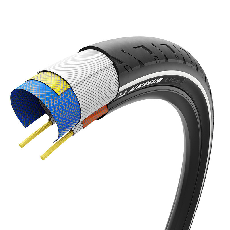 Protección contra pinchazos mejorada gracias a la carcasa reforzada proporcionada por la tecnología MICHELIN City Shield.