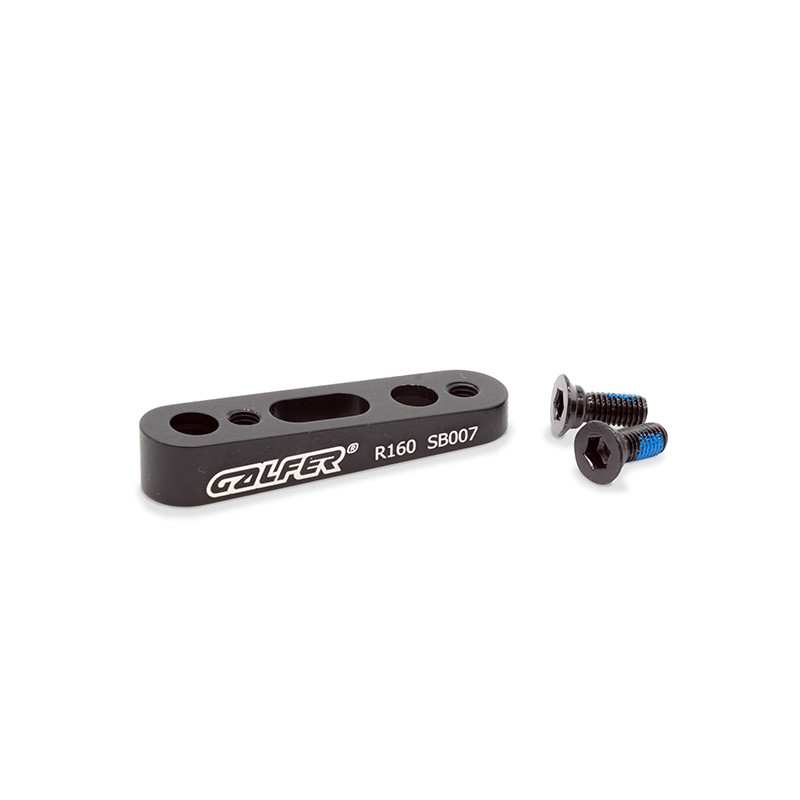 -SB007 (Trasero): 1,5 gramos más ligero que el adaptador original. - Uso: Adaptador delantero reversible Flatmount para discos de 140 mm y 160 mm. - Peso: 9 g (sin tornillos) / 13 g (con los 2 tornillos incluidos).