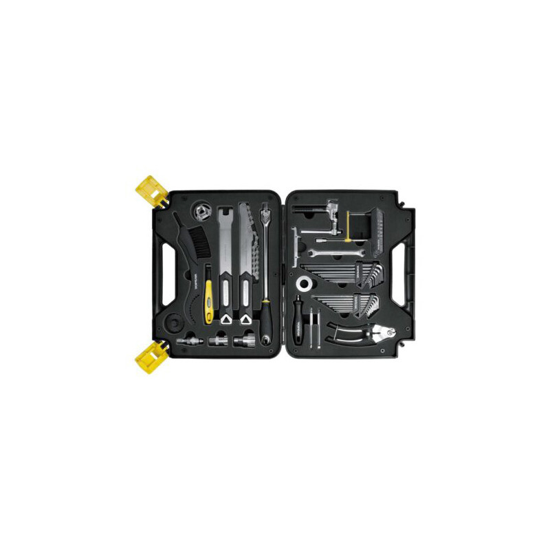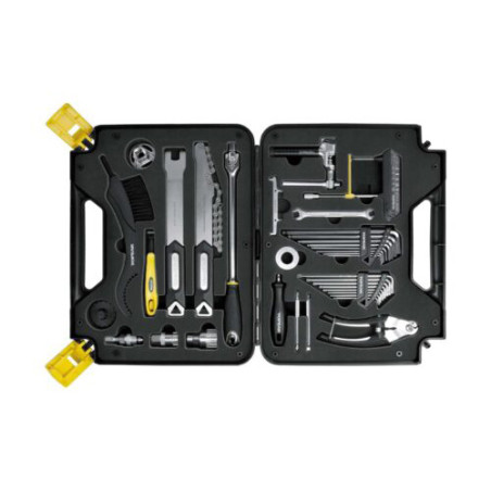 36 herramientas profesionales para bicicletas, con calidad de taller, caben perfectamente en un maletín de transporte profesional. Ideales para talleres, eventos o mantenimiento de bicicletas en casa.