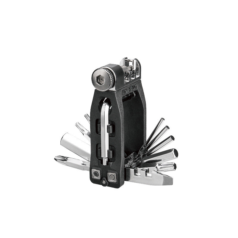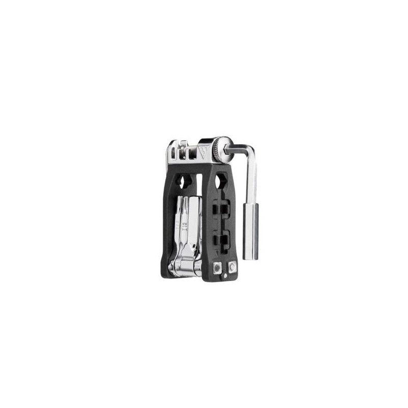La multiherramienta de 16 funciones más ligera y compacta (con herramienta de cadena integrada) disponible. Muy útil, ya que cabe en el bolsillo de un maillot, en una alforja o incluso en una Ninja ToolBox. * La herramienta de cadena es compatible con cadenas de una y varias velocidades de hasta 12 velocidades, NO incluye cadenas de pasador hueco Campagnolo.