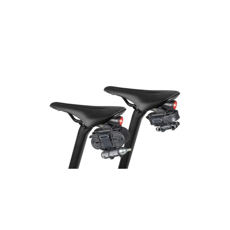 Proporciona una forma alternativa de guardar la mayoría de las cámaras de aire con una mini herramienta o cartuchos de CO2 para su viaje. Se monta en el raíl del sillín con el Duo Fixer incluido, que también permite un doble uso con los accesorios del sistema Topeak Duo Fixer, incluidas las herramientas Tubi, los infladores de CO2, las luces y los guardabarros. Un simple deslizamiento y “clic” es todo lo que se necesita para realizar un viaje seguro.