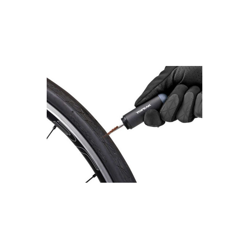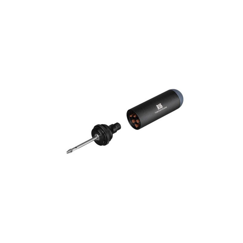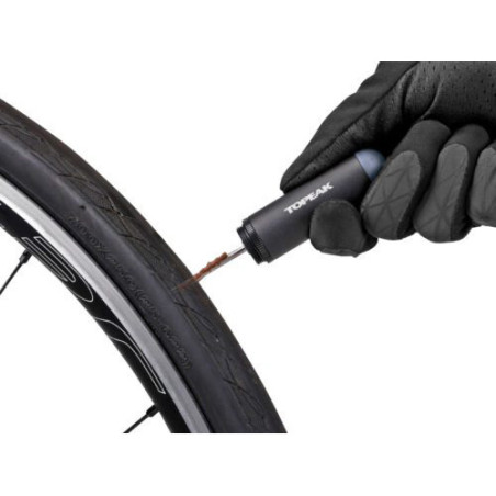 Kit de reparación de neumáticos sin cámara para bicicletas de carretera almacenado de forma compacta en una cápsula estilo cartucho de CO2 que se utiliza solo para reparar neumáticos o, además, con un inflador de CO2 para inflarlos. Montaje en los raíles del sillín o en el cuadro de la bicicleta con HybridMaster Mini, TubiMaster GX DF, NanoMaster DF o TubiMaster GXT Bolt-on para una solución completa de reparación y/o inflado de neumáticos sin cámara.