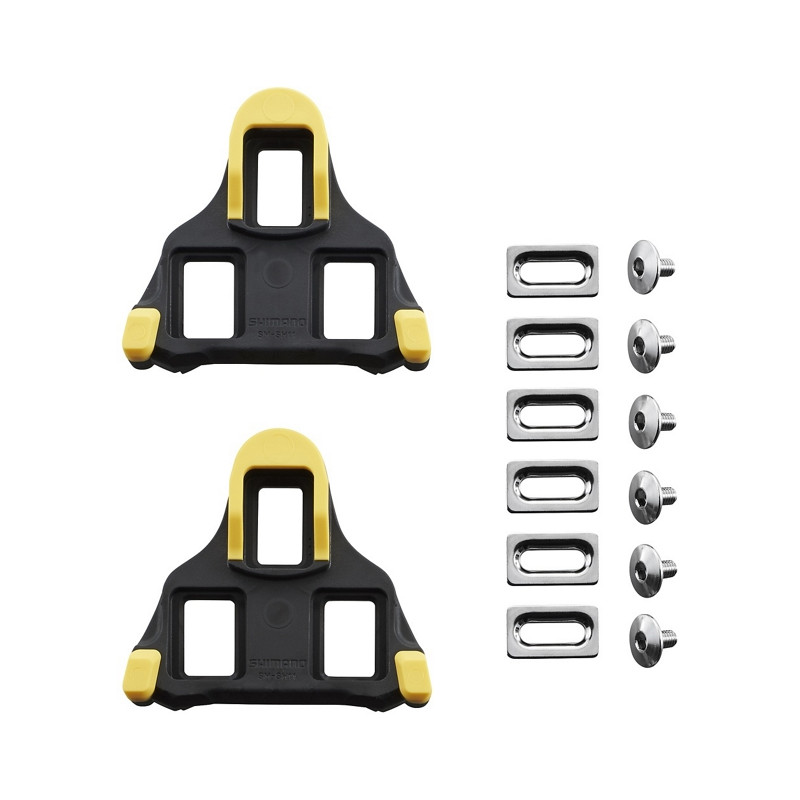 El diseño apto para caminar tiene puntos de contacto con el suelo azules/amarillos/rojos para evitar el desgaste de la parte de la cala que se engancha con el pedal.