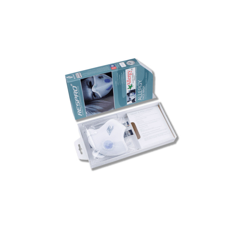 Se sabe que todos los materiales utilizados en la mascarilla Respro® Allergy son inertes y es improbable que provoquen una reacción alérgica. El material de la mascarilla es ultraligero y permeable al aire, lo que permite que la cara respire fácilmente. Las válvulas Techno™ están fabricadas en polipropileno con diafragmas de caucho de silicona de calidad médica. El filtro Hepa-Type™, también de polipropileno, filtra el polvo fino respirable submicrónico (de tamaño inferior a 1 micra).