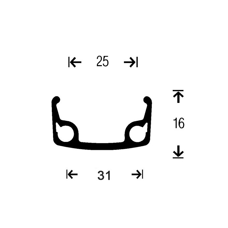 -Llanta de pared simple V/Brake con 36T, perfil de 25mm interior, 31mm exterior y 16,4mm de altura. ETRTO: 406-36 radios negros-Carrete gurpil trasero de 36T de aluminio y eje de 9,5mm