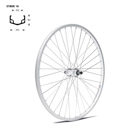 -Llanta Cyber-10 26" plata de pared simple para V/Brake. Perfil interior de 19,30mm, exterior de 24,5mm y altura de 16,10mm. ETRTO: 559